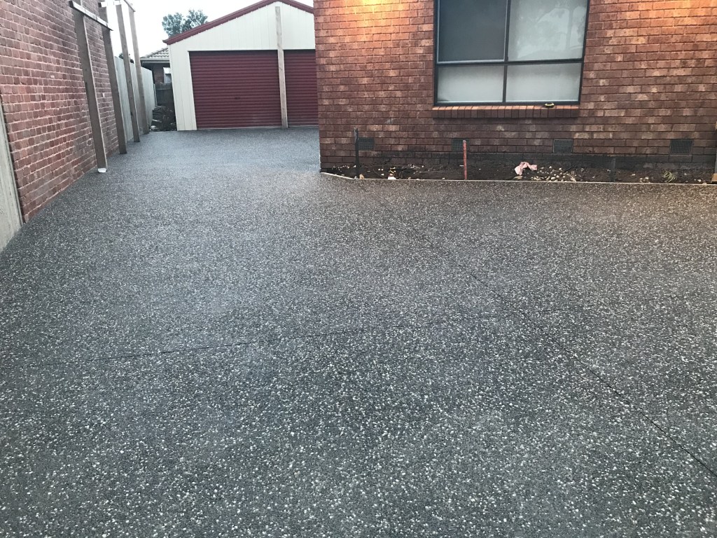 Aggregate concrete, where we create visually striking surfaces by revealing the natural stones or pebbles embedded within the concrete. This technique not only enhances the aesthetic appeal with a unique, textured finish but also provides a durable, slip-resistant surface ideal for driveways, walkways, and patios